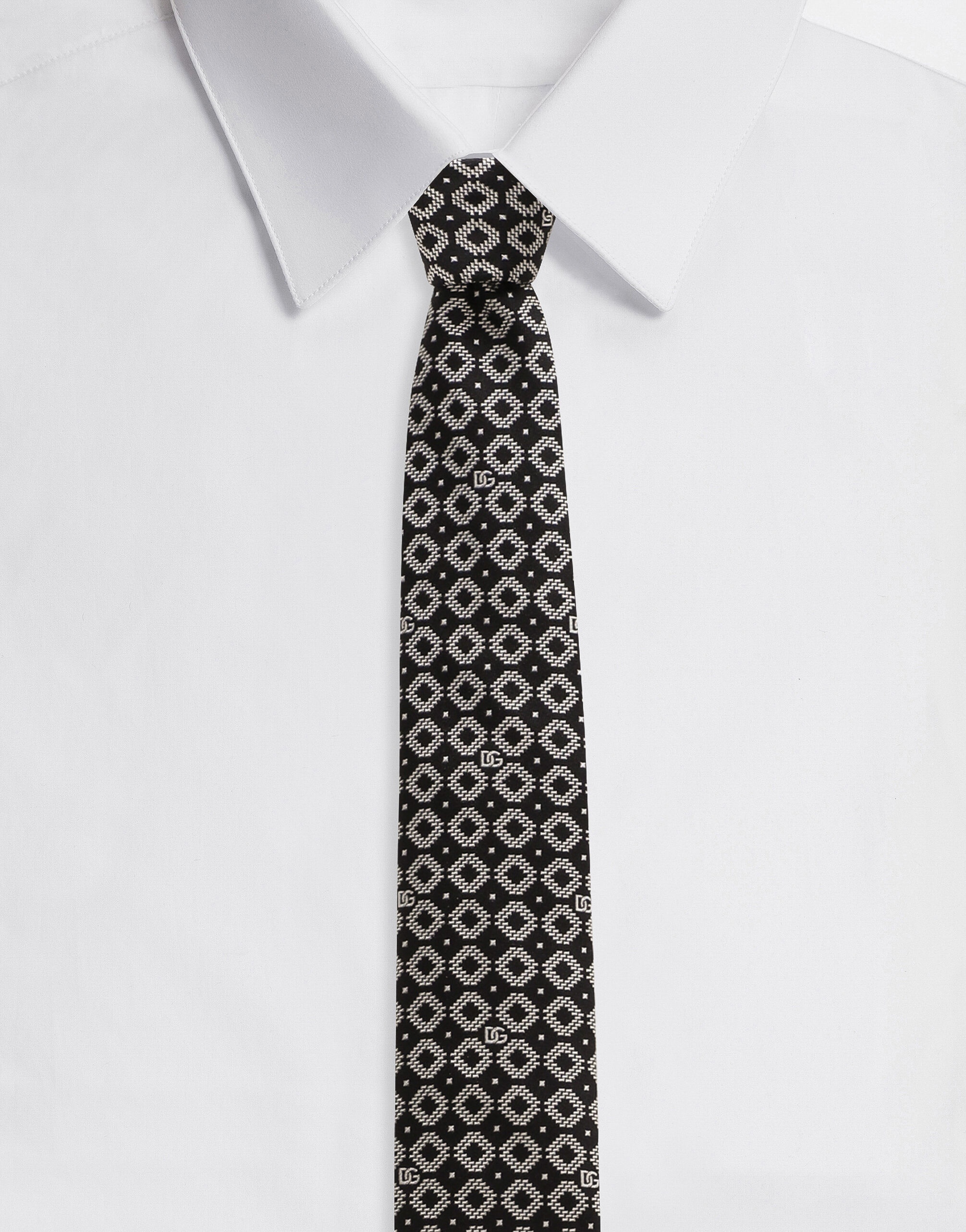 In the “Sartoriale” collection, iconic Italian sartorial heritage is presented from a new perspective, made up of lines, silhouettes and details, concealed buttoning, geometric lapels, and jackets that have seen their proportions completely overhauled. The tale is a journey embarked upon to discover a new kind of tailoring that is perfect in terms of fit, with meticulous attention to detail, that strives to speak and represent the style of the wearer, through small – yet significant – details that will make every piece unique. Silk Martini tie with DG logo embroidery: • Black • Pointed tip • 6-cm blade • Single loop on the back with branded label • Lined • Made in Italy External composition: 100% Silk Internal composition: 100% Silk