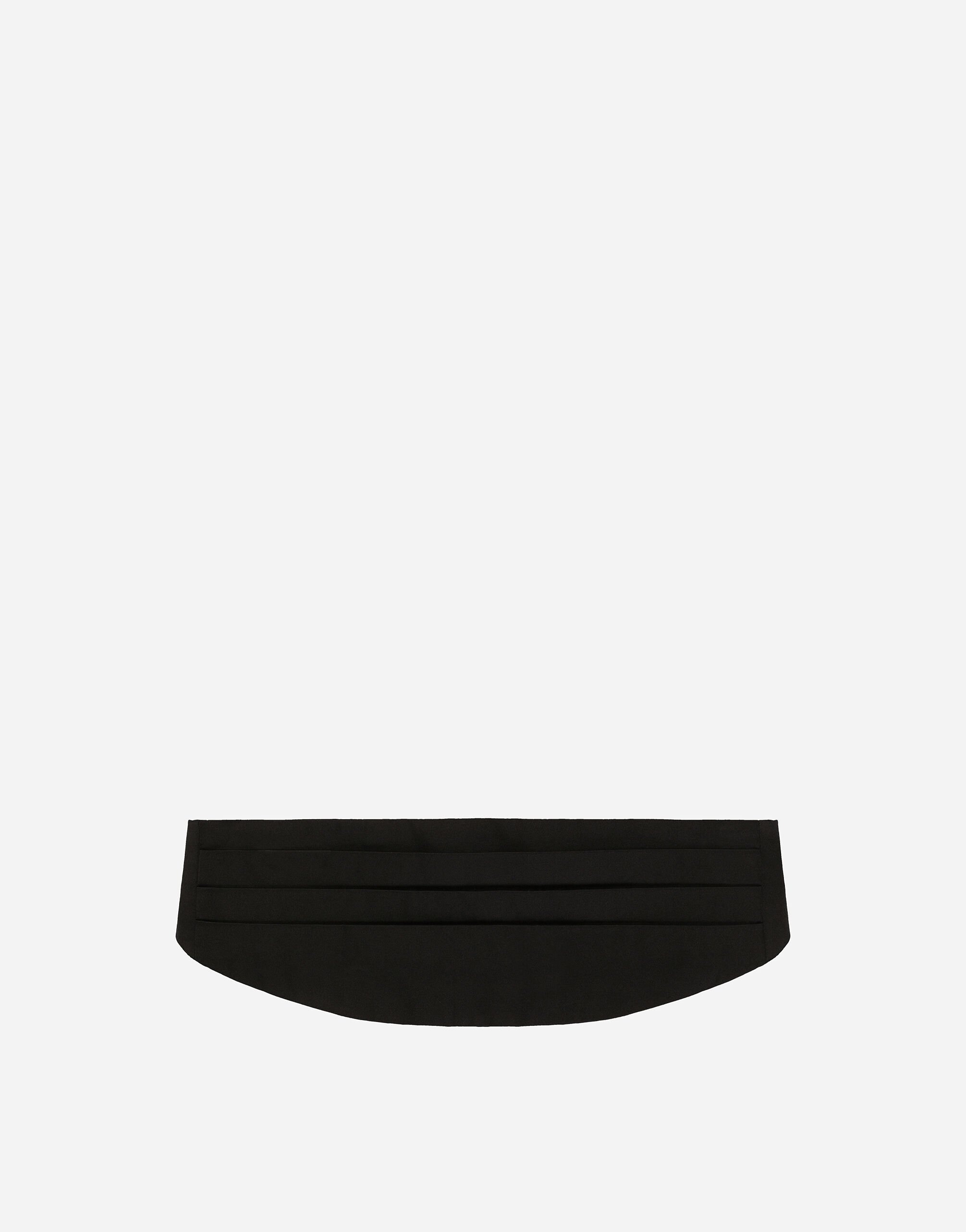 Menswear and womenswear mix and mingle, influencing one another and creating tailoring that embraces endless nuances, from the boldest to the most sophisticated, to define the rules of eternally classy femininity. A monochrome retelling in Nero Sicilia black, embellished by golden touches and rhinestones, adorning clean lines and incorporating stylish fabrics such as velvet, chiffon, lace, organza, and unique mesh details, the expression of authentic beauty for dresses, shirts and accessories. Silk satin cummerbund: • Black • Adjustable hook fastening on the back • “Dolce&Gabbana” logo • Made in Italy External composition: 100% Silk Internal composition: 100% Silk