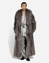 Contemporary men’s formalwear: The FW 24/25 Dolce&Gabbana Men’s Collection is embracing the concept of absolute elegance dominated by the iconic Nero Sicilia black. The daywear of the Dolce&Gabbana man comes to life through the outerwear that comes in a range of lengths and the slim-fit pants. For nightwear, the look becomes scintillating thanks to sequined embellishment and stone appliques. This refined taste can also be seen on the accessories, such as on the slip-ons with hand-applied organza flower accent and the new clutch. Silk satin robe with piping and DG logo embroidery: • Gray • Shawl lapels • Wrap fastening with belt • Front patch pockets with DG logo • Lined • The piece measures 81 cm from the rear collar seam on a size IT 48 • Made in Italy External composition: 100% Silk Internal Composition: 100% Silk