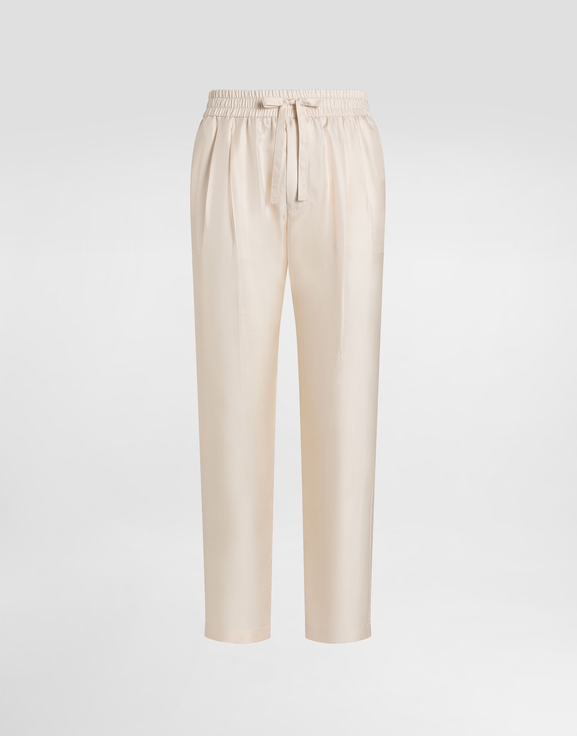 These classic jogging pants are perfect for those looking for a casual yet refined look. Made of silk twill, it offers uncompromising comfort and style. Silk twill jogging trousers: • Beige • The model is 185 cm tall and wears a size 48 IT • Made in Italy External Composition: 100% Silk