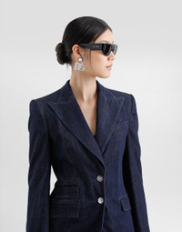 Single-breasted cotton denim and silk Turlington jacket: • Blue • Peak lapels • Long sleeves • Flap pockets • Floral-print satin lining • DG-branded metal button fastenings • The piece measures 70.5 cm from the rear collar seam on a size IT 40 • The model is 175 cm tall and wears a size IT 40 • Made in Italy External composition: 43% Cellulose Fiber 28% Cotton 22% Modal 5% Silk 2% Spandex Internal composition: 97% Polyester 3% Spandex