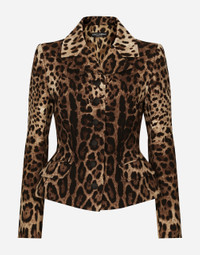 Single-breasted double wool crepe jacket with leopard print: • Notched lapels • Long sleeves • Flap pockets • Leopard-print stretch satin lining • Padding on the sides • Canneté-covered button fastenings • The piece measures 55 cm from the rear collar seam on a size IT 40 • The model is 175 cm tall and wears a size IT 40 • Made in Italy Care And Details External composition: 100% Wool Internal composition: 97% Polyester 3% Spandex