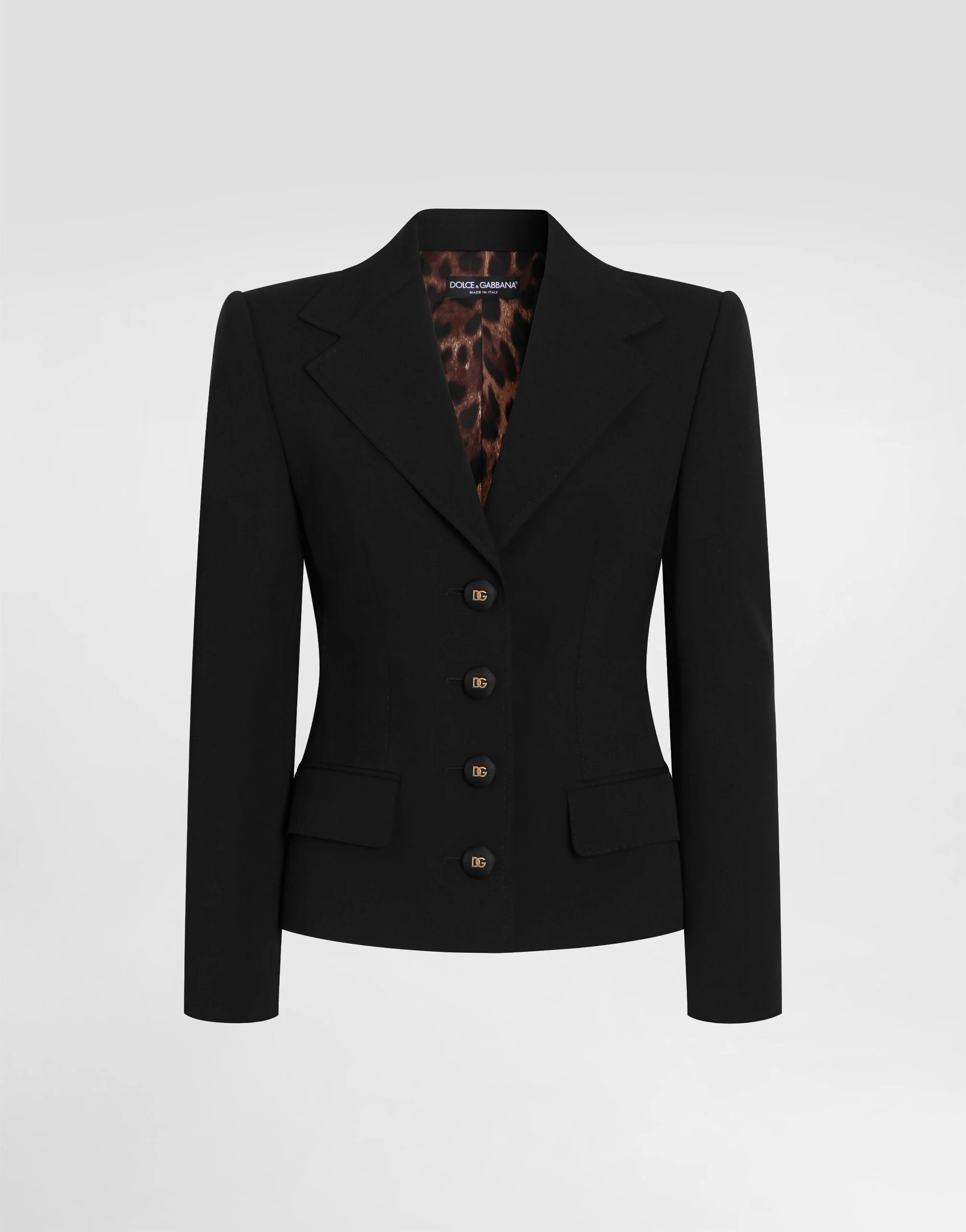 This jacket represents the timeless elegance and attention to detail typical of Italian fashion. Perfect for a sophisticated look, it stands out for its refined silhouette and precious materials. Single-breasted jacket: • Black • Dolce shape lined, canvassed • Notched lapels • Front and sleeves with buttons • Squeezed waist with darts • Lined and canvassed • The model is 175 cm tall and wears size 40 IT • Made in Italy External Composition: 96% Virgin Wool, 4% Elastane Internal Composition: 93% Silk, 7% Elastane