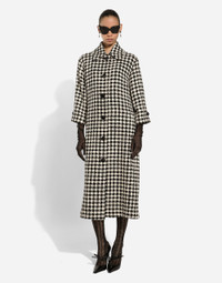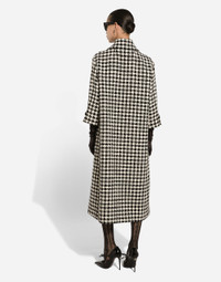 Inspired by 80s fashion photography, the Black Sicily collection masterfully blends masculine and feminine elements, pairing tailored cuts and corset details for the FW 24/25 season. A new vision of the iconic Nero Sicilia black is conveyed through contemporary and sensual looks: jackets and skirts in all-over glen plaid pair with openwork socks, while the 50s-inspired Mun shoes with Eva heel go with the houndstooth Sicily bag featuring crocodile-print leather inserts. Single-breasted macro-houndstooth wool coat: • White and Black • Single-breasted • Long sleeves • Side pockets • Loose fit • Silk satin lining • Satin-covered button fastenings • The piece measures 120 cm from the center back on a size IT 40 • The model is 175 cm tall and wears a size IT 40 • Made in Italy External composition: 65% Virgin Wool 35% Cotton Internal composition: 100% Silk