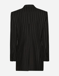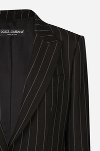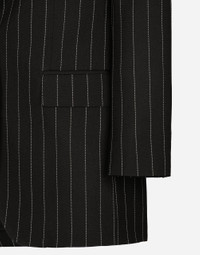 In the “WOMAN SS 24” Collection, the imagery of old Sicily interacts with the masculine, with sensual shapes, lace, nude tones and delicate overlays, to create pieces that move amid clean silhouettes, the elegance of the 1960s, the contrasts of black and white and luxurious textures. The designers are reworking their signature style and their iconic Sicilia black color to convey an aware, seductive and confident Sicilian WOMAN who is imbued with sensuality. Single-breasted pinstripe wool jacket: • Gray • Peak lapels • Long sleeves • Flap pockets • Silk satin lining • Button fastenings • The piece measures 70 cm from the center back on a size IT 40 • The model is 175 cm tall and wears a size IT 40 • Made in Italy External composition: 100% Virgin Wool Internal composition: 100% Silk