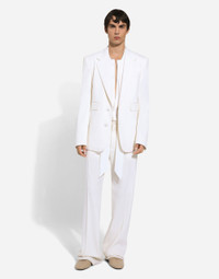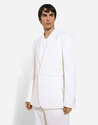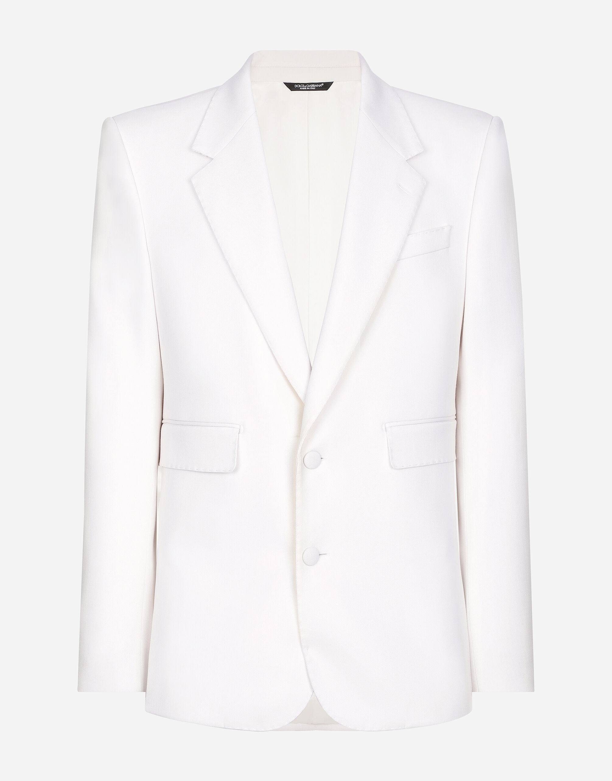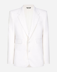 The SS24 “Stile” Collection recounts and clearly presents a strong concept: the unique and unmistakable style of Dolce&Gabbana. A word that is more than a statement. It is a concept! The designers work with surfaces, textures, layers and color nuances, as well as the sheen and fineness of the materials themselves, creating a “Stylish” collection. We’re going back to our roots with the desire to reaffirm the “Stile” - style -, flair and iconic DNA of the brand. Tailored single-breasted stretch wool jacket: • White • Slim Sicilia fit • Notched lapels • Double-button fastening on the front • Outer flap pockets and breast pocket, inner welt pockets • Buttoned cuffs • Central vent • Lined • The piece measures 75 cm from the rear collar seam on a size IT 48 • Made in Italy External composition: 98% Virgin Wool 2% Spandex Internal composition: 100% Silk