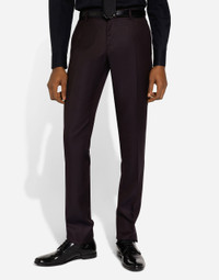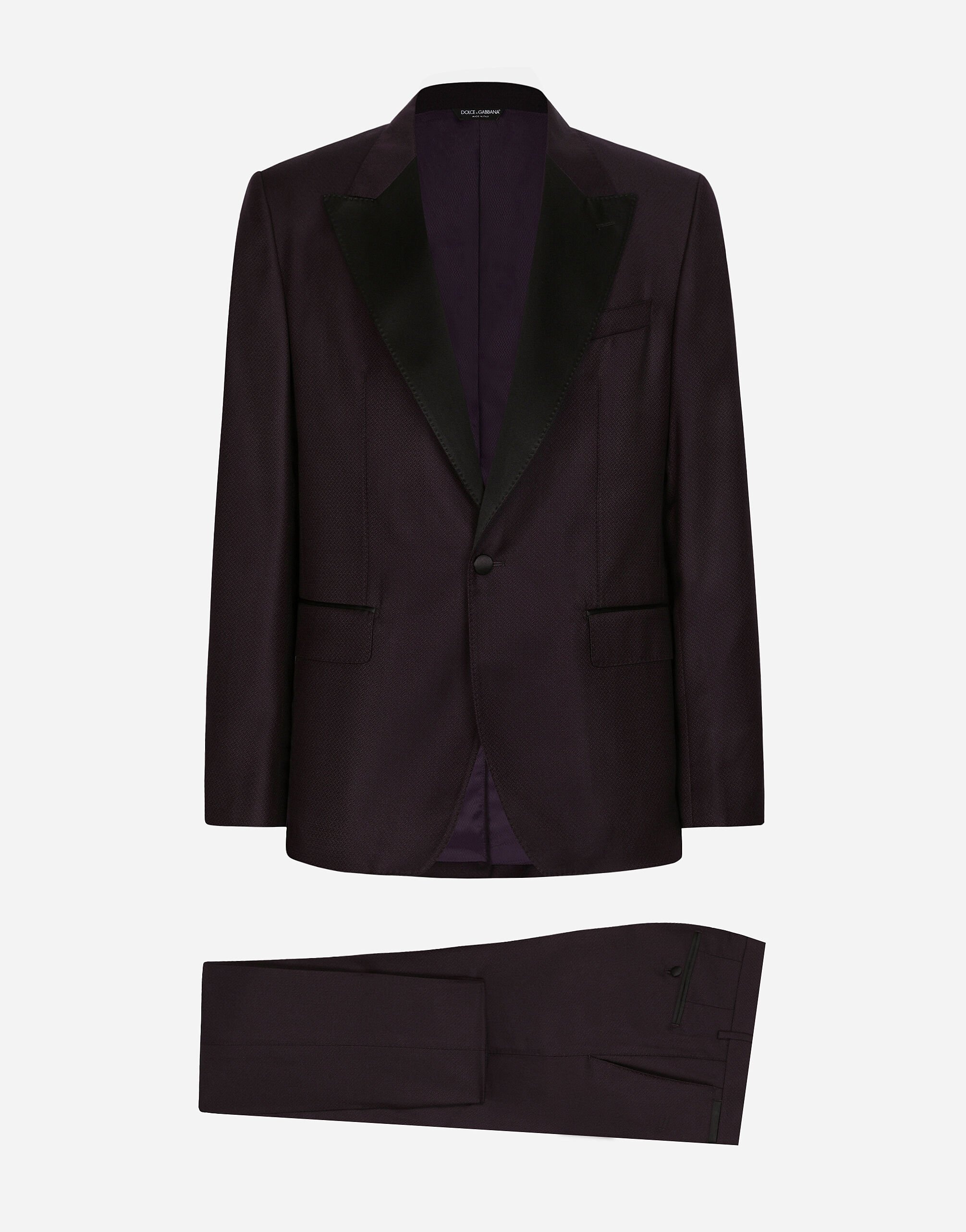Tailoring means beauty, proportions, skilled cuts and sophisticated details. The FW 24-25 Sartoriale Collection builds on this solid foundation to define new ways of pairing colors, materials and textures. Sicilian rock gray envelops different textures, while Nero Sicilia black adorns textile and velvet weaves and camel pairs with orange. Various types of pinstripes, textured-effect cashmere, double fabrics, suede and denim meet in the looks. Tailored two-piece tuxedo suit in micro-patterned wool with silk satin details: • Black • Deconstructed Sicilia fit • Jacket with peak lapels, flap pockets and breast pocket, inner pockets and central vent • Single-breasted fastening with two buttons • Lined • Pants with front slant pockets, rear buttoned welt pockets and satin side bands • The jacket measures 73.5 cm from the back collar seam on a size IT 48 • The pants measure 115 cm on the outer leg and the hem is 17.5 cm wide on a size IT 48 • Made in Italy External composition: 54% Virgin Wool 36% Viscose 8% Silk 2% Polyester Internal composition: 100% Viscose