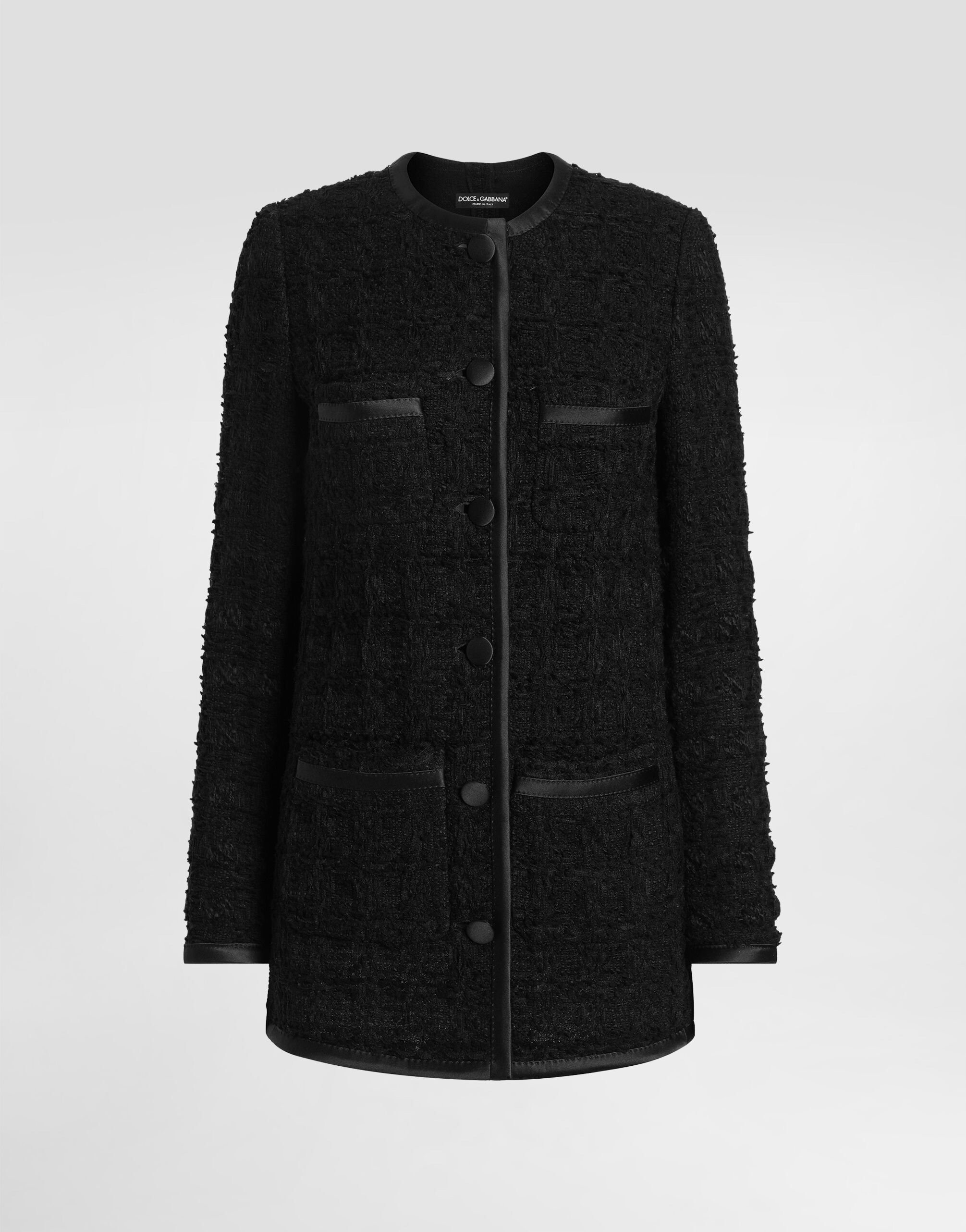 This single-breasted tweed jacket represents timeless elegance, perfect for completing a sophisticated and modern look. With refined details such as the crew neck and tulle applique, it is a garment that does not go unnoticed. Single-breasted tweed jacket: • Black • Crew neck • Reinforced with tulle on the perimeter edges • Pockets and cuff in duchesse fabric • Long sleeves with elbow cut • Double tulle patch pockets on chest and waist • Lacing with loops and a small poussoir • Women's buttoning, right on left • The model is 175 cm tall and wears size 40 IT • Made in Italy External Composition: 32% Polyamide, 24% Viscose, 18% Acrylic, 15% Cotton, 9% Silk, 2% Polyester Internal Composition: 48% Cotton, 23% Polyamide, 19% Elastane, 8% Acetate, 2% Silk