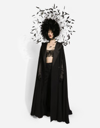 Single-breasted wool and cashmere cape: • Black • Duchesse peak lapels • Arm openings • Silk satin lining • Covered button fastenings on the front • The piece measures 154 cm from the center back on a size IT 40 • The model is 175 cm tall and wears a size IT 40 • Made in Italy Care And Details External composition: 78% Virgin Wool 12% Silk 7% Cashmere 3% Polyester Internal composition: 100% Silk