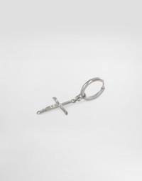 Sicilian flair, tailoring and sensuality: these are the three keywords that encapsulate the DNA, the values and the foundations that distinguish every creation. Sicily in particular represents the origins and central focus of the brand’s vision. In this collection, the identity and the intrinsic, symbolic value of the logo and the color black are visually enhanced. Multiple pockets, layers and sheer detailing for surprisingly unique looks in terms of proportion and attitude. Thus Nero Sicilia black becomes City and Urban black. Single metal earring: • Silver • Hoop fastening • Small DG logo, crucifix and creole in metal • Engraved logo • Nickel-free and hypoallergenic materials • Made in Italy External composition: 70% Brass 30% Steel