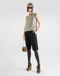 Gold and black: the iconic shades of Dolce&Gabbana color the Holiday Package Collection, capturing magnetic charm, timeless elegance, and sophisticated allure. Refined lines and exquisite details perfectly convey the magic of the festive season. Glossy, shimmering textures like lame jersey, thermostrass mesh, and sequins create looks that are sure to make a statement. Sleeveless blouse in crystal mesh: • Gold • Round neck with visible tubular edge binding • Sleeveless • Regular fit • Stretch silk crepe de chine lining • Zipper fastening at the back • The piece measures 55 cm from the rear collar seam on a size IT 40 • The model is 175 cm tall and wears a size IT 40 • Made in Italy External composition: 86% Polyester 9% Spandex 5% Silk Internal composition: 91% Silk 9% Spandex