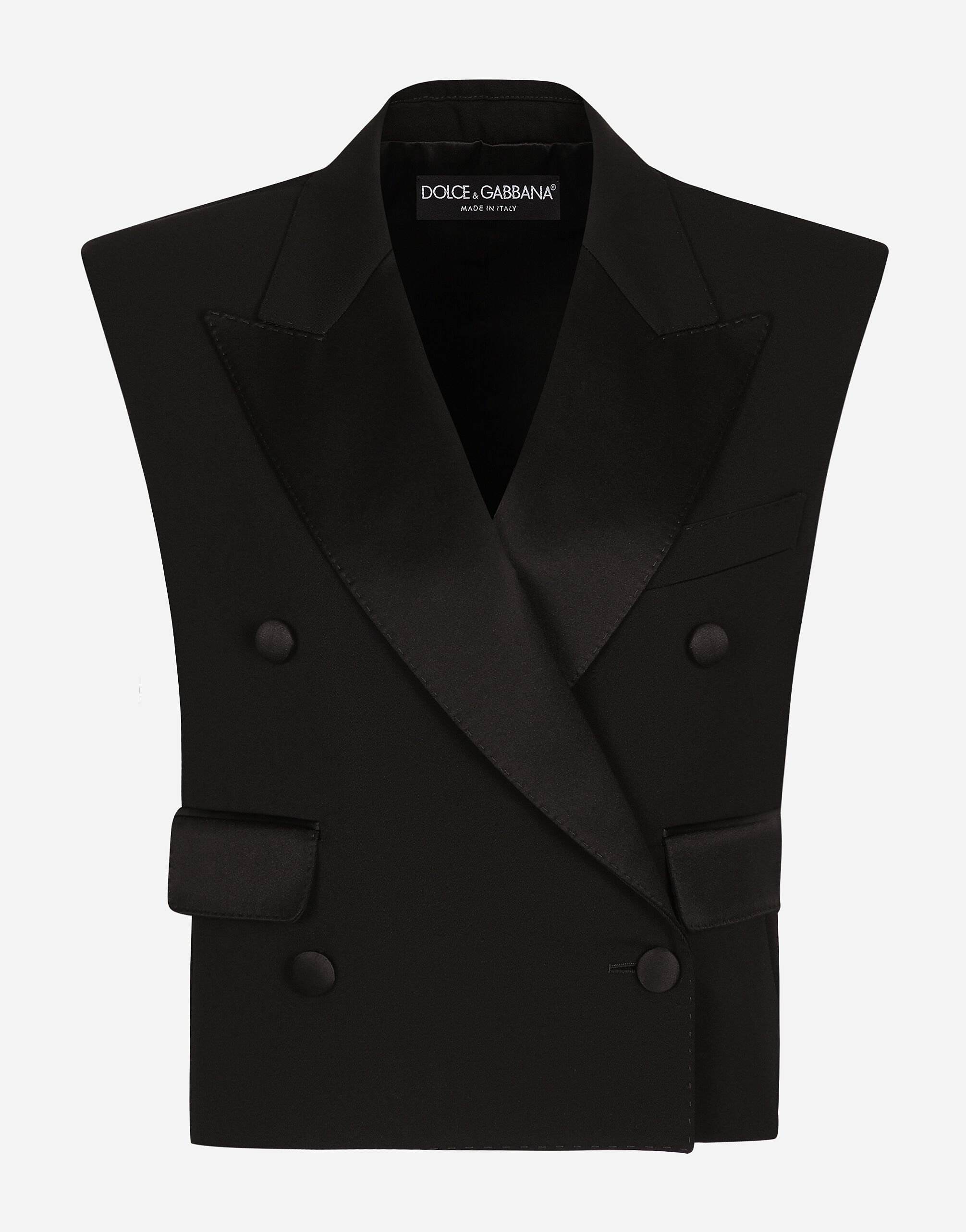 Sleeveless double-breasted wool gabardine tuxedo jacket