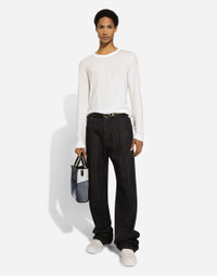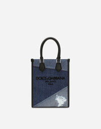 This small bag from the Shopping range is crafted from patchwork denim and features the embroidered Dolce&Gabbana logo. Small crossbody bag in patchwork denim and calfskin with the Dolce&Gabbana Milano logo: • Blue • Embroidered logo • Concealed magnetic fastening • Calfskin top handles • Adjustable and detachable tape strap with calfskin details • Fabric lining and flat pocket • Item comes with a branded dust bag • Measurements: H25 x W19 x D9 cm • Made in Italy External composition: 85% Cotton 10% Calfskin 5% Viscose Internal composition: 80% Cotton 10% Acrylic 10% Calfskin