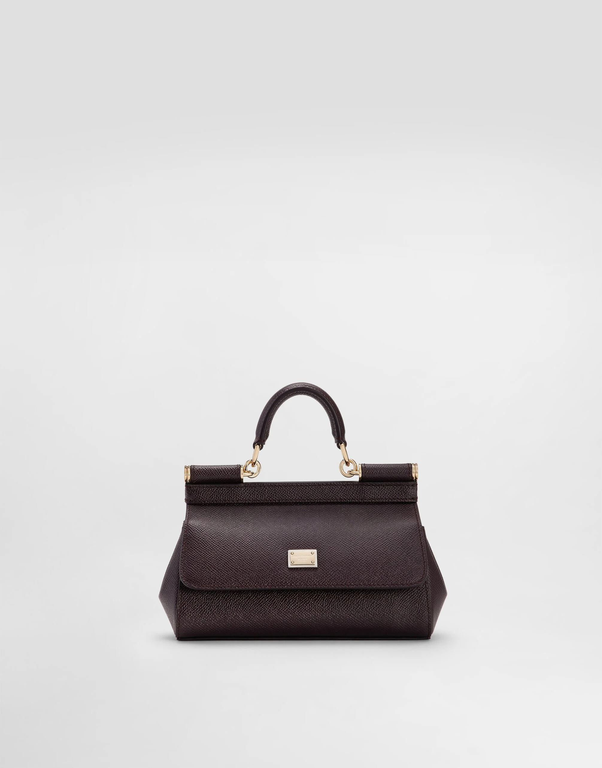 A brand icon, the practical and compact Sicily bag is perfect for carrying your essentials with you. Coming in Dauphine calfskin, it features an adjustable, detachable crossbody strap and is embellished by a logo tag with two metal plating finishes. Small Sicily bag in Dauphine calfskin: • Burgundy • Front flap with hidden double magnetic fastening • Logo tag featuring two metal plating finishes • Top handle and adjustable, detachable strap in Dauphine calfskin • Printed fabric lining and flat pocket • Item comes with a branded dust bag • Measurements: H13 x W19 x D6 cm • Made in Italy External composition: 100% Calfskin Internal composition: 80% Cotton 20% Calfskin External composition: 100% Calfskin