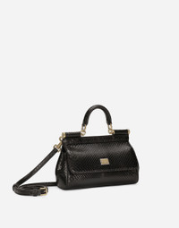 A brand icon, this practical and compact Sicily bag is perfect for carrying your essentials with you. Crafted from python skin, it comes with the branded tag featuring two metal plating finishes. Small python skin Sicily handbag: • Black • Front flap with hidden double magnetic fastening • Branded tag featuring two metal plated finishes • Top handle and adjustable, detachable strap in python skin • Nappa leather lining and flat pocket • Item comes with a branded dust bag • Measurements: H13 x W19 x D6 cm • Made in Italy External composition: 100% Python Molurus Internal composition: 100% Lambskin