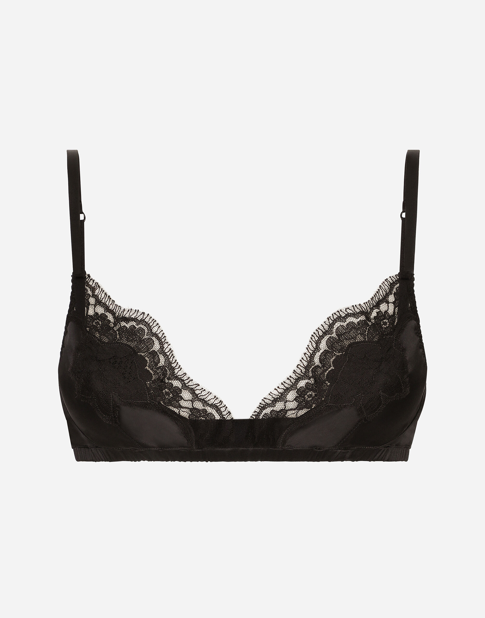 Der bügellose Soft-Cup-BH aus elastischem Seidensatin mit edlen Details aus Baumwollspitze hat eine bequeme Passform: • Adjustable silk straps • Adjustable; 3-position hook-and-eye fastenings on the center of the back • Made in Italy External composition: 80% Silk 12% Cotton 5% Spandex 3% Polyamide