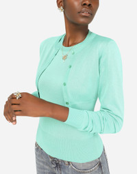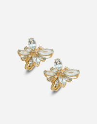 Clip-on earrings featuring an elegant butterfly with aquamarine wings and a main body and antennae made from citrines and diamonds. The gemstones work perfectly together in a stunning combination of colours, placed in a stylish wire prong setting. The DOLCE&GABBANA logo is engraved on the back of the clip. •Technical specifications. •Gold 18 Kt. •Gemstones. 16 marquise aquamarines, 6 drop-shaped and oval citrines , quartz variety, 14 round brilliant-cut diamonds. •Made in Italy. Yellow 18 kt gold