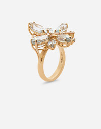 Ring features with an elegant butterfly with aquamarine wings, and a body and antennae in citrines and emeralds. The gemstones work perfectly together in a stunning combination of colours, placed in a stylish wire prong setting. The DOLCE&GABBANA logo is engraved inside the ring. •Technical specifications. •Gold 18 Kt. •Gemstones. 8 marquise aquamarines, 3 drop-shaped and oval citrines, quartz variety, 7 round brilliant-cut diamonds. •Made in Italy. Yellow 18 kt gold