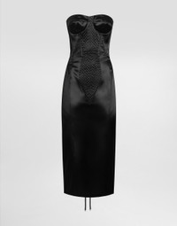 The Spring/Summer 2025 Women’s Collection is celebrating Italian beauty through bold and charismatic femininity. The 50s-inspired lingerie is the star, intermingling with fitted dresses, corsets and oversize trench coats. The iconic jackets have been updated with cropped cuts and modern inserts, while the floral prints add a romantic edge. The eveningwear shines with light fabrics and crystals, accompanied by look-defining accessories, from iconic bags to the cross earrings. Strapless satin dress with corset details: • Black • Sweetheart neckline • Sleeveless • Stretch silk satin lining • Rear zipper and hook-and-eye fastening • The piece measures 75 cm from the waist down on a size IT 40 • The model is 175 cm tall and wears a size IT 40 • Made in Italy External composition: 65% Acetate 29% Polyamide 6% Spandex Internal composition: 92% Silk 8% Spandex