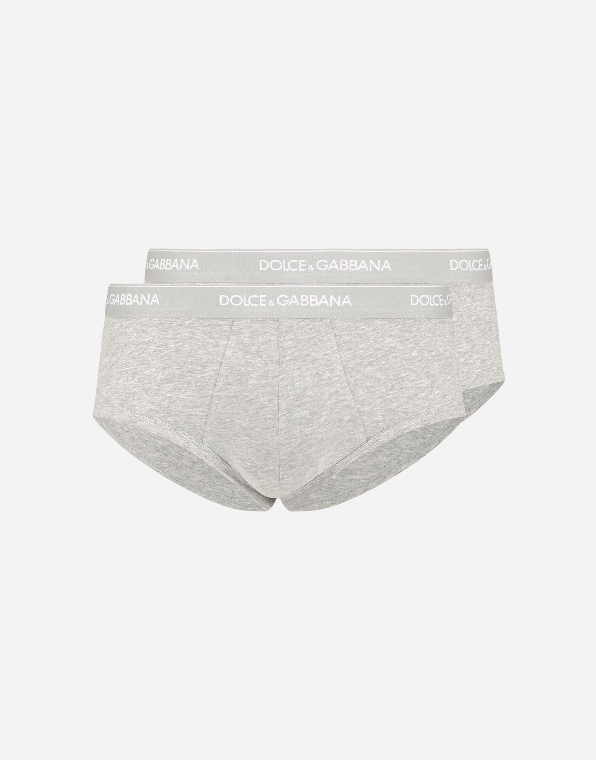 The “Continuative” Collection is the modern men’s closet designed by Dolce&Gabbana. A range of timeless, iconic pieces developed across all product categories. Practical and comfortable men’s underwear in stretch cotton jersey: • Gray • Box contains two pairs of Brando briefs in the same color • Soft elasticated waistband with contrasting Dolce&Gabbana logo • Loose fit Given the product characteristics, unfortunately some items in the underwear category cannot be returned. For more information, please consult the Returns and Refunds section. External composition: 95% Cotton 5% Spandex