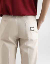 The “Essential” Collection is the modern men's closet designed by Dolce&Gabbana. A range of timeless, iconic pieces developed across all product categories. Tailored stretch cotton twill pants with a metal tag featuring the Dolce&Gabbana logo: • Regular fit • Belt loops on the waist • Fly-covered zipper and button fastening • Front slant pockets and welt back pockets • The item measures 99 cm on the outer leg and the hem is 19 cm wide on a size IT 48 • The model is 185 cm tall and wears a size IT 48 • Made in Italy External composition: 97% Cotton 3% Spandex