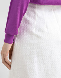This mini skirt is a stylish and versatile piece that is perfect for adding a touch of class to any look. The stretch fabric construction ensures comfort and style, while the high waistband and inset pockets on the sides add functional and design details. Stretch mat mini skirt: • White • A-line with 5 cm high belt • Covered zip at the center back • Pockets inserted in the hips • Lined • Length 50 cm on size 40 IT • The model is 175 cm tall and wears size 40 IT • Made in Italy External Composition: 47% Cotton, 38% Viscose, 14% Linen, 1% ElastaneInternal Composition: 91% Silk, 9% Elastane