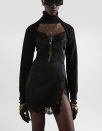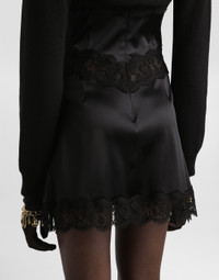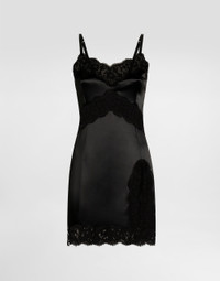 This elegant stretch satin dress is perfect for a special evening, with lace details that add a touch of sophistication and femininity. The cut at the waist and the side slit give a timeless elegance, ideal for those who love a sophisticated style. Stretch satin dress with lace details: • Black • Satin shoulder strap at the front, elastic at the back • Encrusted lace at neckline and waist • Bodice with side cut • Darts on the skirt • Side slit finished in lace • Invisible zip on the back • Skirt hem finished with lace • The model is 175 cm tall and wears size 40 IT • Made in Italy External Composition: 46% Acetate, 26% Polyamide, 24% Cotton, 4% Elastane