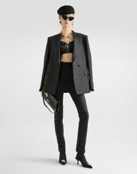 These leggings are the perfect balance between comfort and style, ideal for a sophisticated and modern look. Stretch satin leggings: • Black • Dolce waist • Elastic girdle • With internal elastic at waistband and leg bottom • Satin insert in the center front with topstitching pattern • Lacing in the left front with hook • The model is 175 cm tall and wears size 40 IT • Made in Italy External Composition: 60% Polyamide, 30% Polyester, 10% Elastane Internal Composition: 53% Polyamide, 30% Cotton, 17% Elastane