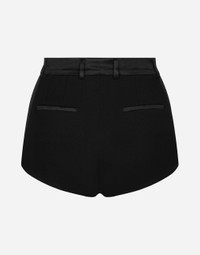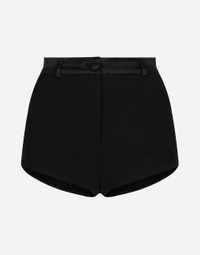 Menswear and womenswear mix and mingle, influencing one another and creating tailoring that embraces endless nuances, from the boldest to the most sophisticated, to define the rules of eternally classy femininity. A monochrome retelling in Nero Sicilia black, embellished by golden touches and rhinestones, adorning clean lines and incorporating stylish fabrics such as velvet, chiffon, lace, organza, and unique mesh details, the expression of authentic beauty for dresses, shirts and accessories. Stretch wool high-waisted tuxedo panties: • Black • High-waisted • Slant pockets • Front zipper fastening and button • The model is 175 cm tall and wears a size IT 40 • Made in Italy External composition: 88% Virgin Wool 09% Silk 02% Polyester 01% Spandex