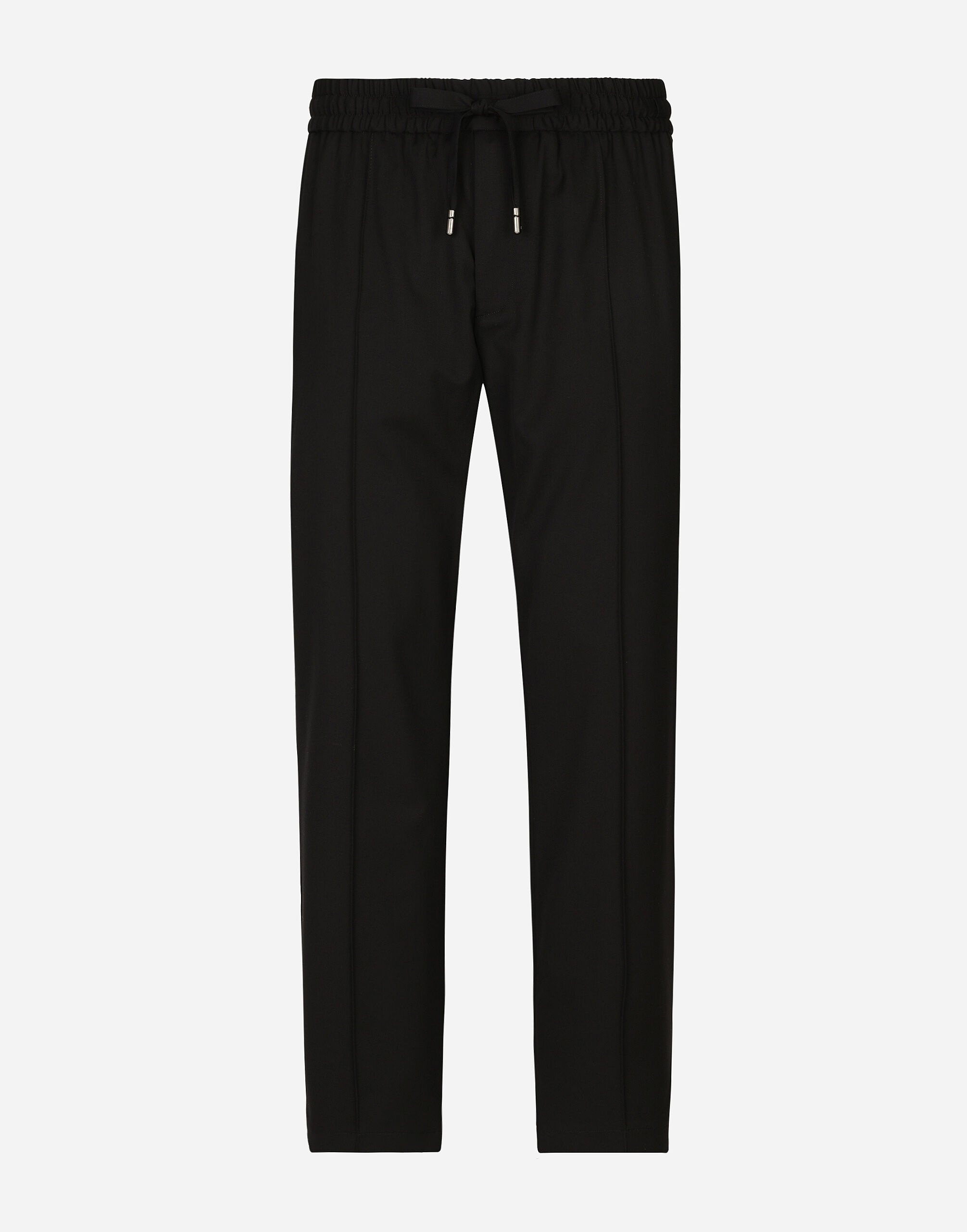 Sicilian flair, tailoring and sensuality: these are the three keywords that encapsulate the DNA, the values and the foundations that distinguish every creation. Sicily in particular represents the origins and central focus of the brand’s vision. In this collection, the identity and the intrinsic, symbolic value of the logo and the color black are visually enhanced. Multiple pockets, layers and sheer detailing for surprisingly unique looks in terms of proportion and attitude. Thus Nero Sicilia black becomes City and Urban black. Stretch wool jogging pants: • Black • Regular fit • Stretch waistband with drawstring • Zipped front pockets and zipped welt pocket at the back • The item measures 105 on the outer leg and the hem is 22 cm wide on a size IT 48 • Made in Italy External composition: 63% Virgin Wool 33% Polyamide 4% Spandex