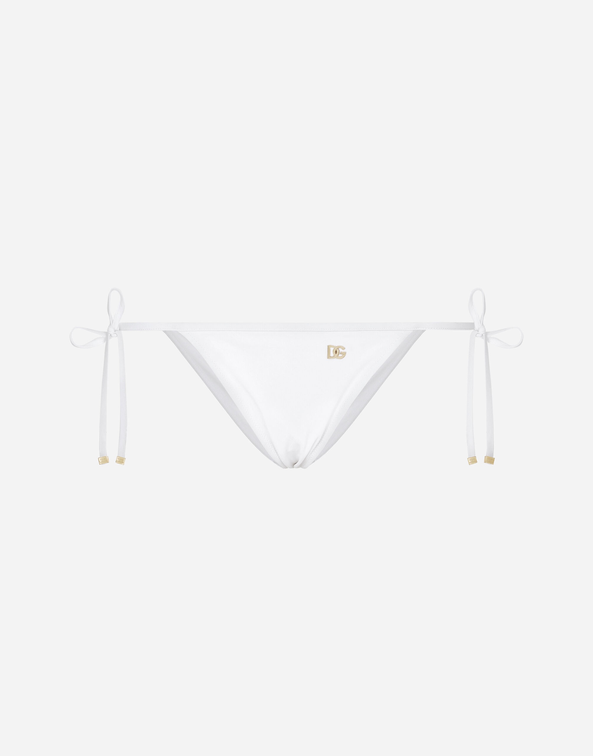 These classic triangle bikini bottoms offer an outstanding fit thanks to the adjustable string ties and come in fine spandex. • Regular fit • Adjustable string ties on the sides • Branded DG aglets in nickel-free gold-plated metal • DG logo in nickel-free gold-plated metal on the front side • Matching PVC pouch • Made in Italy External composition: 75% Polyamide 25% Spandex
