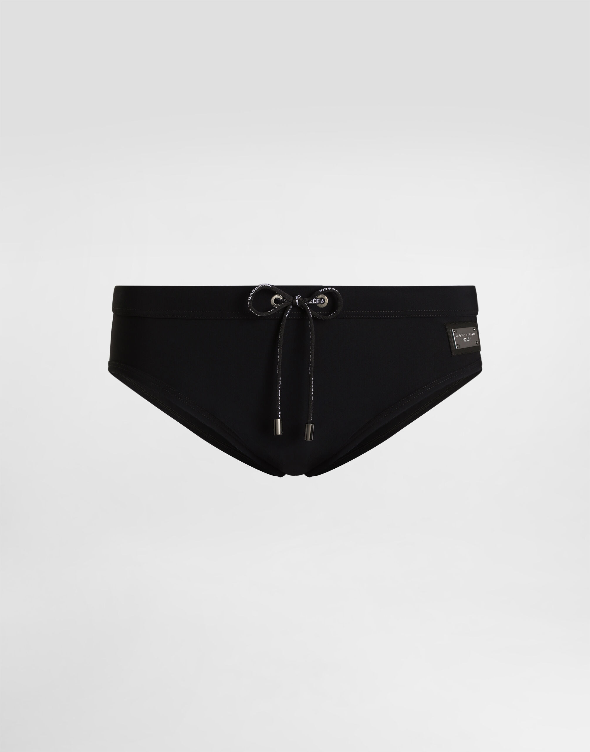 The “Essential” Collection is the modern men’s closet designed by Dolce&Gabbana. A range of timeless, iconic pieces developed across all product categories. Swim briefs with high-cut leg in spandex technical fabric with metal Dolce&Gabbana logo tag: • Black •Logo-detailed stretch waistband with a drawstring and nickel-free metal aglets •Matching light nylon pouch with zipper •Made in Italy External composition: 72% Polyamide 28% Spandex Internal composition: 85% Polyamide 15% Spandex