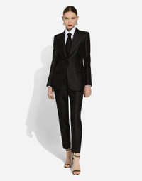 The DNA collection is distinguished by timeless shapes, bringing together three concepts: Sicilian flair, tailoring and sensuality. Nero Sicilia black and optical white predominate and pair with colors that catapult us onto the island of Sicily and make us dream. The designers channel the timeless wardrobe made up of creations that are instantly unmistakable in their simplicity, presenting us with sophisticated beauty loaded with meaning and symbolism that transcends fashion. Tailored quilted floral jacquard pants: • Black • Dolce high waist • Front slant pockets • Welt back pockets • Belt loops • Inner leg: 73 cm • Hem: 17 cm • Zipper and canneté-covered button with DG logo • The model is 175 cm tall and wears a size IT 40 • Made in Italy External composition: 64% Cotton 23% Polyester 13% Silk