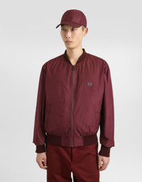 The DNA Men's Collection reimagines daily wear with bold contrasts, meticulous details, and innovative silhouettes. Outerwear stands out with clean lines and high-tech materials, merging sportiness with sophistication in sweaters, sweatshirts, and trousers. A striking color palette, including Black Sicily, caramel, cream, burgundy, and stone gray, pairs with iconic prints like Leopard and Polka dots, enhancing the collection's authentic and refined look. Technical fabric bomber jacket with rubber tag and the Dolce&Gabbana logo: • Burgundy • Front zipper fastening • Zipped outer pockets • Stretch knit neck, hem and sleeves • Unlined • The piece measures 63 cm from the rear collar seam on a size IT 48 • Made in Italy External composition: 100% Polyester