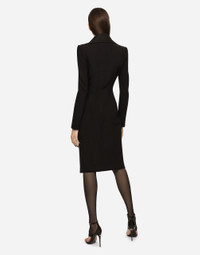 • Canneté peak lapels • Long sleeves • Unlined • Branded Galalith button fastenings on the side • The piece measures 70 cm from the waist down on a size IT 40 • The model is 175 cm tall and wears a size IT 40 • Made in Italy Care And Details External composition: 68% Polyamide 15% Silk 11% Spandex 6% Polyamide