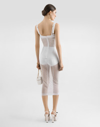 The Spring/Summer 2025 Women’s Collection is celebrating Italian beauty through bold and charismatic femininity. The 50s-inspired lingerie is the star, intermingling with fitted dresses, corsets and oversize trench coats. The iconic jackets have been updated with cropped cuts and modern inserts, while the floral prints add a romantic edge. The eveningwear shines with light fabrics and crystals, accompanied by look-defining accessories, from iconic bags to the cross earrings. Tulle calf-length dress with corset details: • White • Sweetheart neckline • Boned bodice • Lined underwired cups • Sleeveless with adjustable stretch straps • Stretch silk satin lining • Rear zipper and hook-and-eye fastening • The piece measures 75 cm from the waist down on a size IT 40 • The model is 175 cm tall and wears a size IT 40 • Made in Italy External composition: 83% Polyamide 9% Silk 8% Spandex Internal composition: 94% Silk 6% Spandex