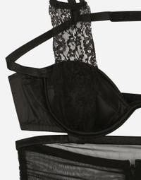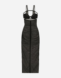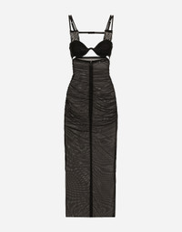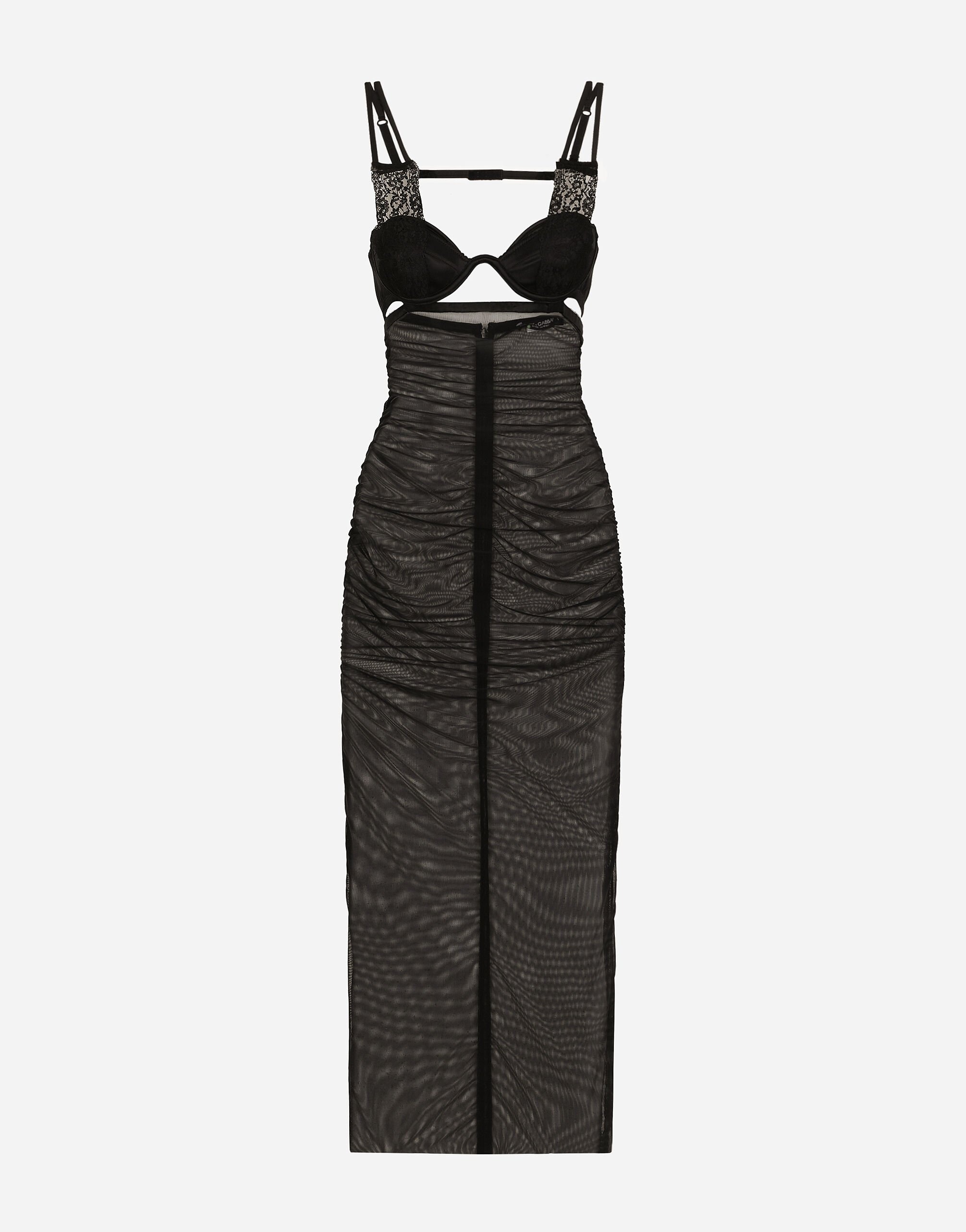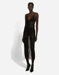 In the “WOMAN SS 24” Collection, the imagery of old Sicily interacts with the masculine, with sensual shapes, lace, nude tones and delicate overlays, to create pieces that move amid clean silhouettes, the elegance of the 1960s, the contrasts of black and white and luxurious textures. The designers are reworking their signature style and their iconic Sicilia black color to convey an aware, seductive and confident Sicilian WOMAN who is imbued with sensuality. Stretch tulle calf-length dress with corset details: • Black • Sweetheart neckline with exposed bra • Sleeveless with spaghetti straps • Stretch silk crepe de chine slip • Rear zipper and bra hook-and-eye fastenings • The piece measures 100 cm from the waistband down on a size IT 40 • The model is 175 cm tall and wears a size IT 40 • Made in Italy External composition: 69% Polyamide 15% Spandex 09% Silk 05% Cotton 02% Viscose Internal composition: 91% Silk 09% Spandex