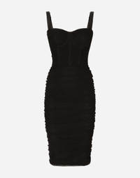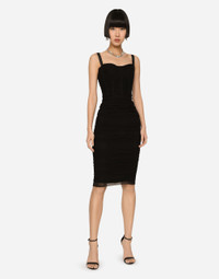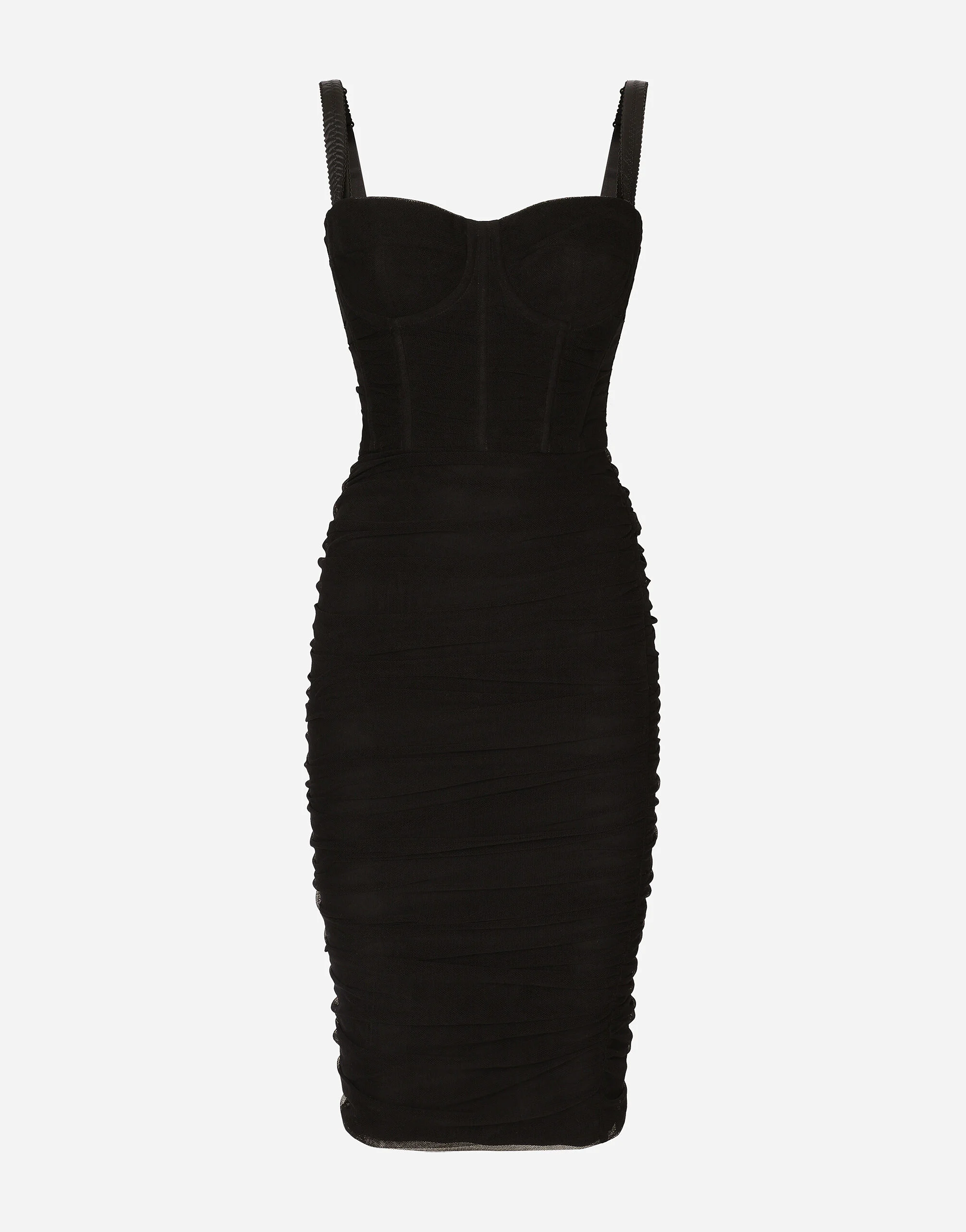 Tulle midi dress with draping and corset: • Sweetheart neckline • Sleeveless with adjustable shoulder straps • Molded cups with underwiring • Boned bodice • Stretch silk crepe de chine slip • Rear zipper and hook-and-eye fastening • The piece measures 70 cm from the waist down on a size IT 40 • The model is 175 cm tall and wears a size IT 40 • Made in Italy Care And Details External composition: 51% Cotton 24% Polyamide 20% Spandex Internal composition: 91% Silk 9% Spandex