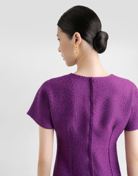 This dress is the perfect choice for a sophisticated and timeless look. Made of tweed, it is ideal for the day thanks to its A-line that enhances the figure with elegance. A-line tweed dress: • Violet • Crew neck • Underbust cut • Kimono sleeves • Back zip opening • Length 55 cm from waist on size 40 IT • The model is 175 cm tall and wears size 40 IT • Made in Italy External Composition: 67% Virgin Wool, 27% Viscose, 6% Polyamide Internal Composition: 92% Silk, 8% Elastane