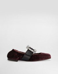 Velvet ballet flats with bejeweled buckle