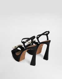 Velvet platform sandals with bejeweled buckle