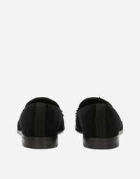 The Holiday collection is an extraordinary story that brings together two worlds: Dolce&Gabbana and the great stars from Hollywood’s Golden Age, who were recognized and admired for their wonderful dresses and extraordinarily glamorous looks. The designers are reinventing and making us dream in front of tailored pieces with breathtaking elegance and visual impact, a sparkling mood that will give everyone a modern, recognizable and unique allure on any occasion. Velvet slippers with embroidered stones: • Black • Calfskin insole with branded label • Branded leather sole • Item comes with a branded dust bag • Made in Italy External composition: 52% Viscose 46% Cotton 2% modal Internal composition: 87% Calfskin 13% Goatskin