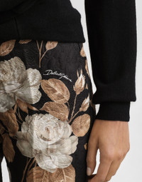 Vintage rose-print brocade trousers