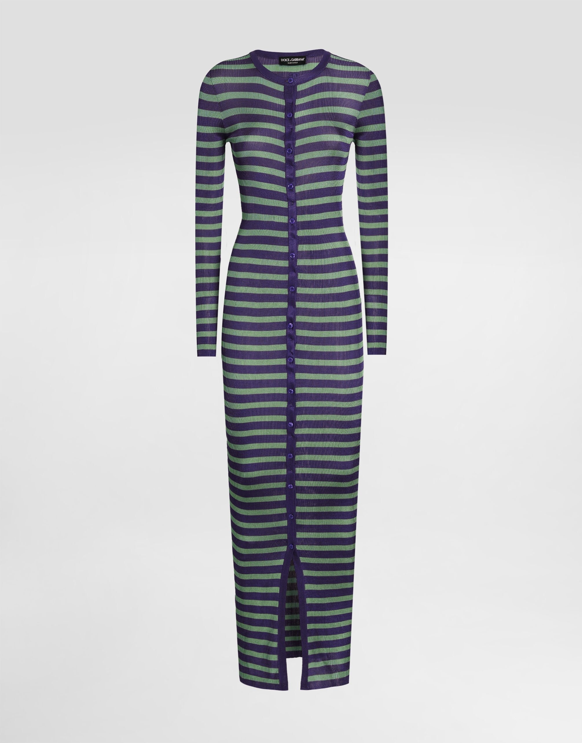 This cardigan is an essential piece for any women's wardrobe, combining comfort and style in a long and versatile design. Perfect for adding a pop of color to any outfit. Viscose cardigan: • Multi-coloured • Crew neck • Long sleeves • Bottom width 150 cm on size 40 IT • The model is 175 cm tall and wears size 40 IT • Made in Italy External Composition: 100% Viscose