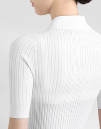 This short-sleeved polo is a versatile and modern garment, perfect for any occasion. The viscose workmanship ensures comfort and style, making it a must-have in any woman's wardrobe. Viscose polo: • White • Polo shirt collar • Short sleeves • Bottom width of 42 cm on size 40 IT • The model is 175 cm tall and wears size 40 IT • Made in Italy External Composition: 47% Polyamide, 41% Viscose, 9% Polyester, 3% Polyurethane