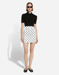 The FW24/25 Mambo Collection is rewriting the rules of Italian elegance, merging the sophisticated style of the 1940s and 1950s with the iconography of American pin-ups. The unmistakable polka-dot motif takes center stage, coming in a variety of shapes and sizes and adorning tulle, charmeuse, twill, silk and poplin, giving life to looks distinguished by black and white accessories and details. An homage to the beauty of Italy and its traditions, the distinctive details of Dolce&Gabbana’s creations. Viscose polo-shirt: • Black • 18-gauge knit • Polo-shirt-style collar • Short sleeves • Regular fit • The piece measures 59 cm from the shoulder seam on a size IT 40 • The model is 175 cm tall and wears a size IT 40 • Made in Italy External composition: 83% Viscose 17% Polyester
