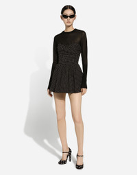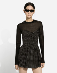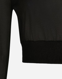 The FW24/25 Mambo Collection is rewriting the rules of Italian elegance, merging the sophisticated style of the 1940s and 1950s with the iconography of American pin-ups. The unmistakable polka-dot motif takes center stage, coming in a variety of shapes and sizes and adorning tulle, charmeuse, twill, silk and poplin, giving life to looks distinguished by black and white accessories and details. An homage to the beauty of Italy and its traditions, the distinctive details of Dolce&Gabbana’s creations. Viscose sweater: • Black • 18-gauge knit • Round neck • Long sleeves • Cropped fit • The piece measures 41 cm from the shoulder seam on a size IT 40 • The model is 175 cm tall and wears a size IT 40 • Made in Italy External composition: 80% Viscose 20% Polyamide