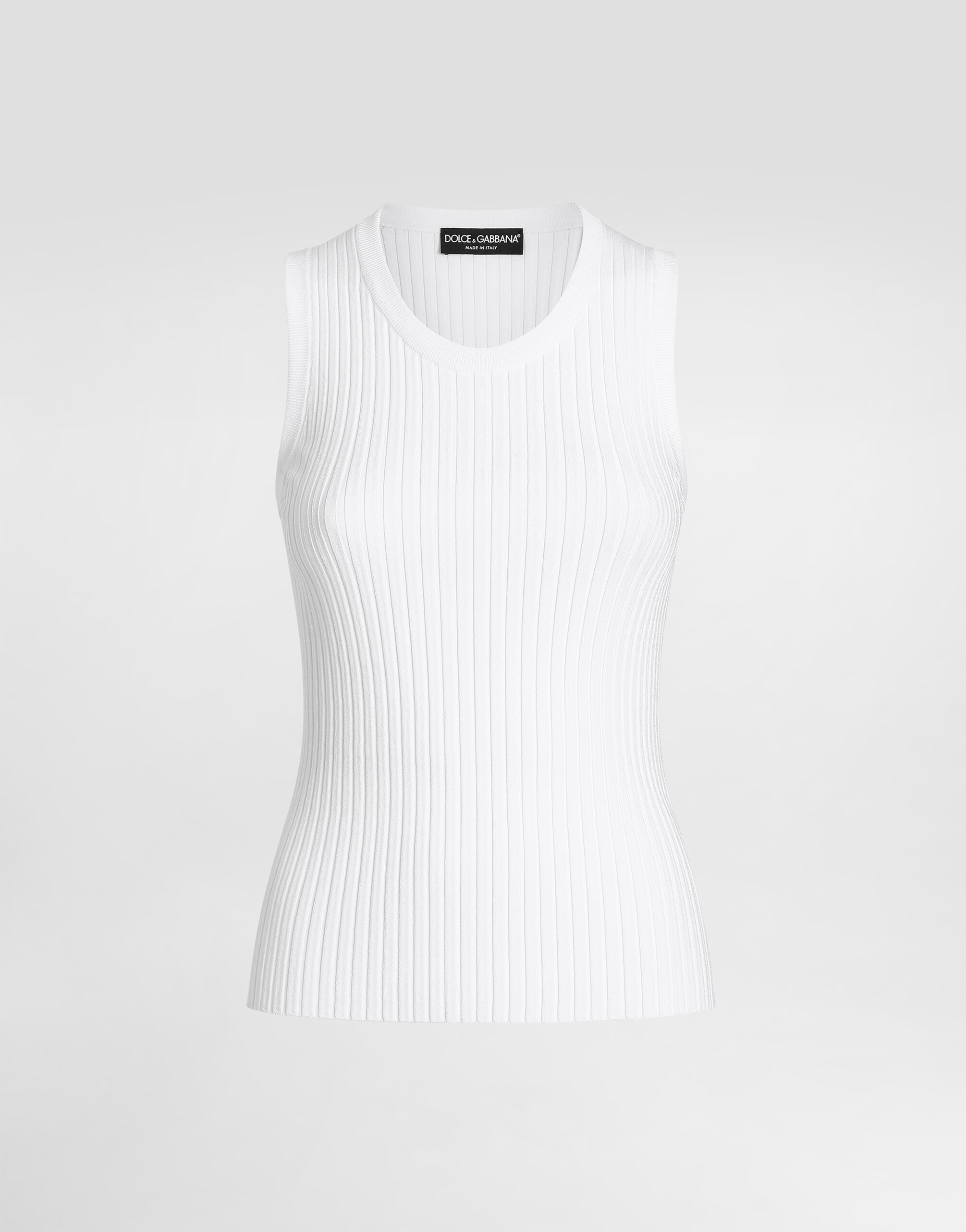 This sleeveless tank top is a wardrobe staple for any woman, combining comfort and style for a versatile look suitable for multiple occasions. Viscose tank top: • White • Sleeveless • The model is 175 cm tall and wears size 40 IT • Made in Italy External Composition: 47% Polyamide, 41% Viscose, 9% Polyester, 3% Polyurethane
