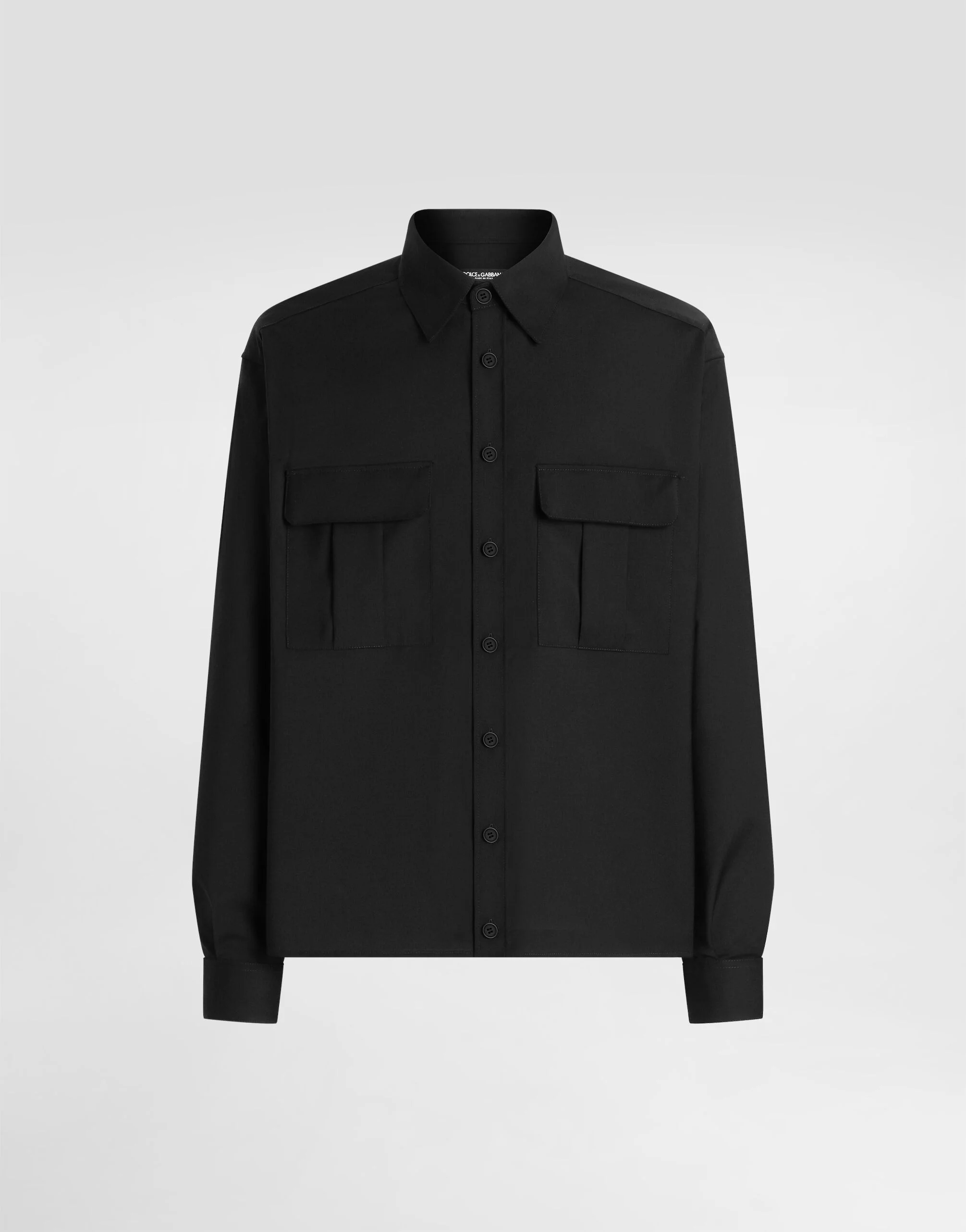 This wool canvas shirt combines elegance and comfort, perfect for a casual yet sophisticated look. Wool blend canvas shirt: • Black • Long sleeves • The model is 185 cm tall and wears a size 48 IT • Made in Italy External Composition: 55% Wool, 41% Polyester, 4% Elastane
