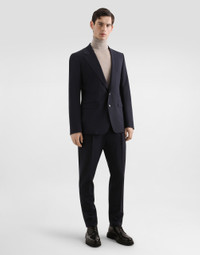 These trousers are an essential garment for the man who loves an informal but refined look, perfect for any casual occasion that requires comfort and style. Wool blend trousers: • Blue • The model is 185 cm tall and wears a size 48 IT • Made in Italy External Composition: 55% Wool, 41% Polyester, 4% Elastane